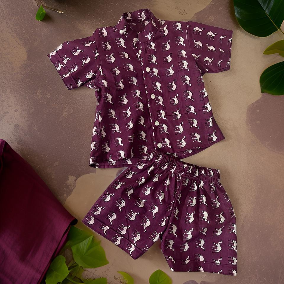 Boys Cotton Shirt & Shorts Set – Maroon Camel Print