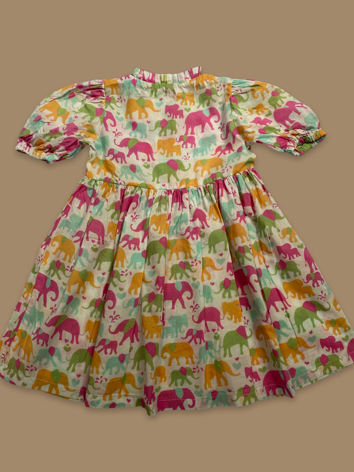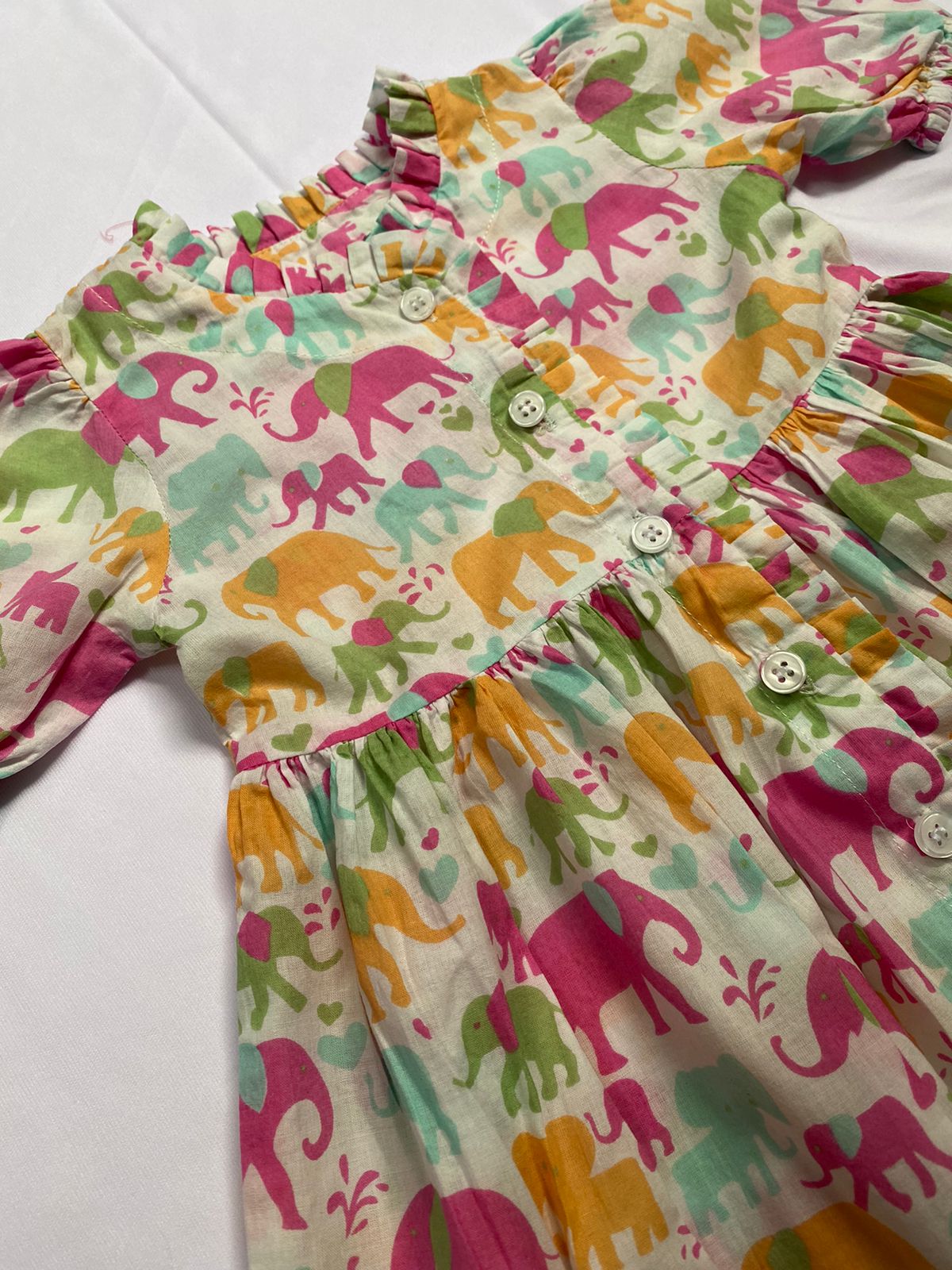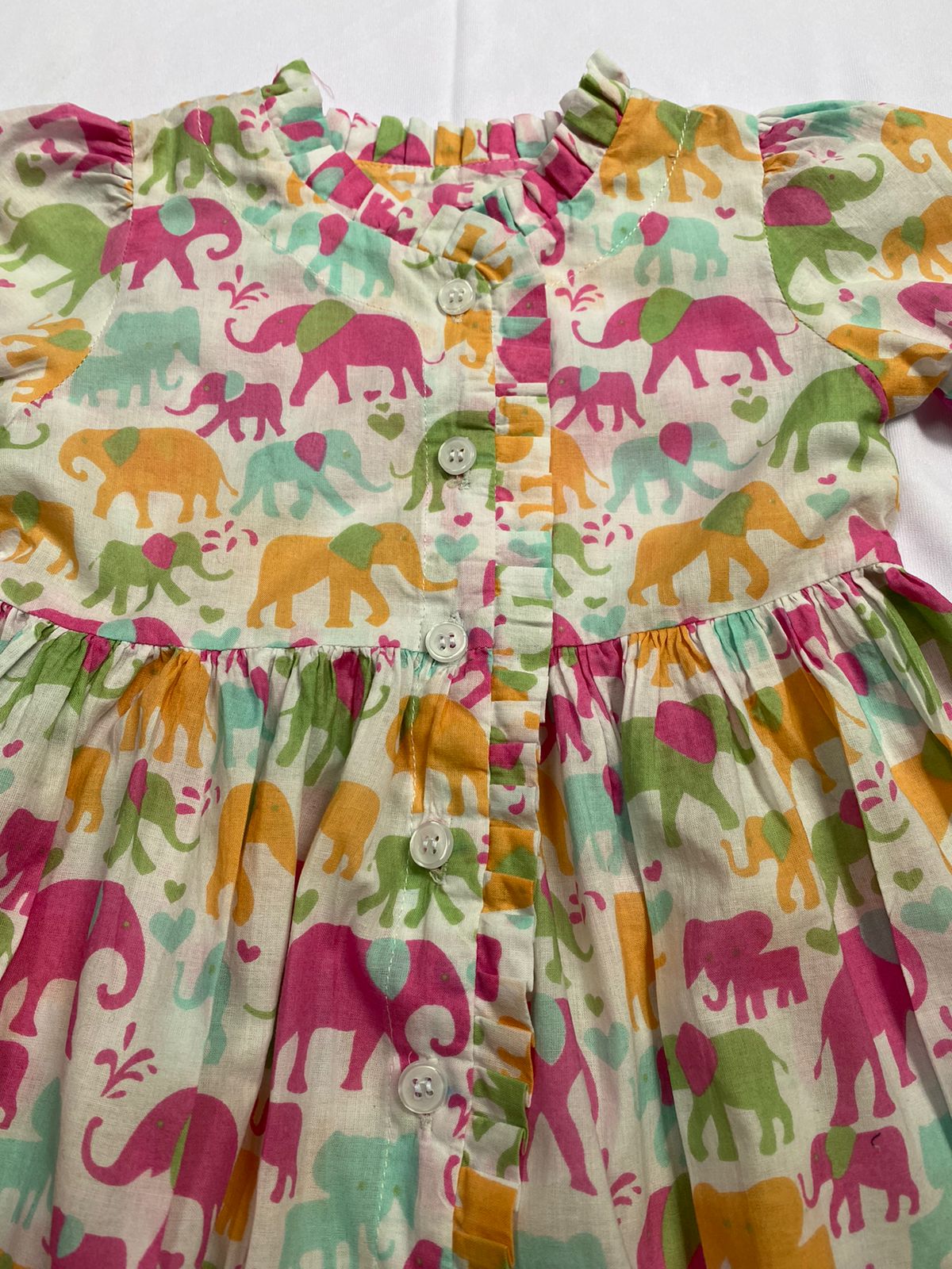 Let your little one stand out in this adorable and vibrant baby frock featuring an all-over multicolor elephant print. Made from soft, skin-friendly cotton, this dress ensures maximum comfort while keeping your baby stylish all day long.